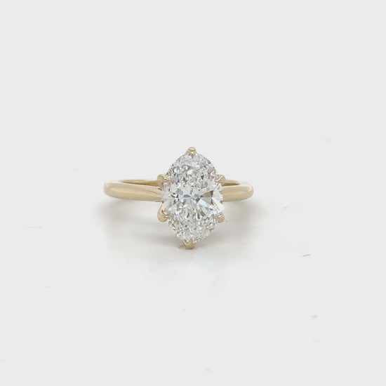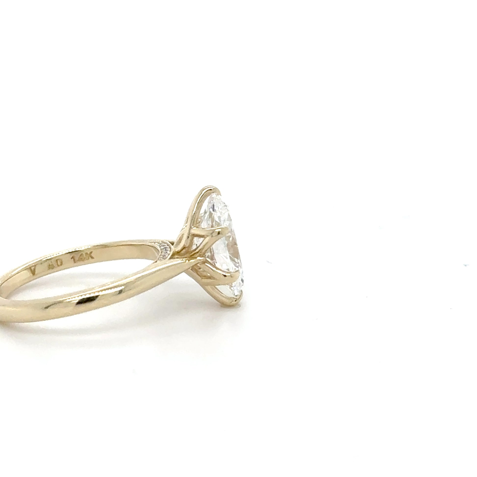 Oval Diamond Engagement Ring with DIamond Bridge crafted in 14k with a total carat weight of 0.15. Features diamonds of E-F color and VVS-VS clarity, set in a Yellow Gold mounting. A luxurious addition to any jewelry collection.